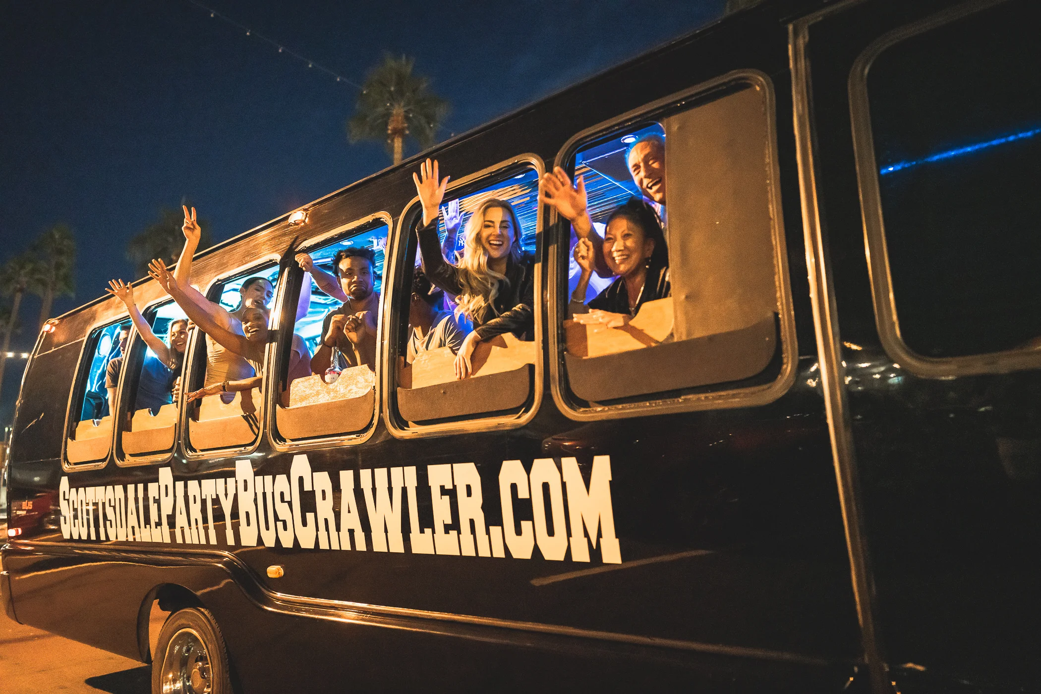 Scottsdale Party Bus Crawler specializes in Old Town Scottsdale Experiences. From bar hopping to cruising main street, our party bus crawler will make sure you and your group get the experience of your life! We also offer 1-way and round trip transfers that are popular for the Waste Management Open, State Farm Stadium, Salt River Tubing, Downtown Phoenix, and more!